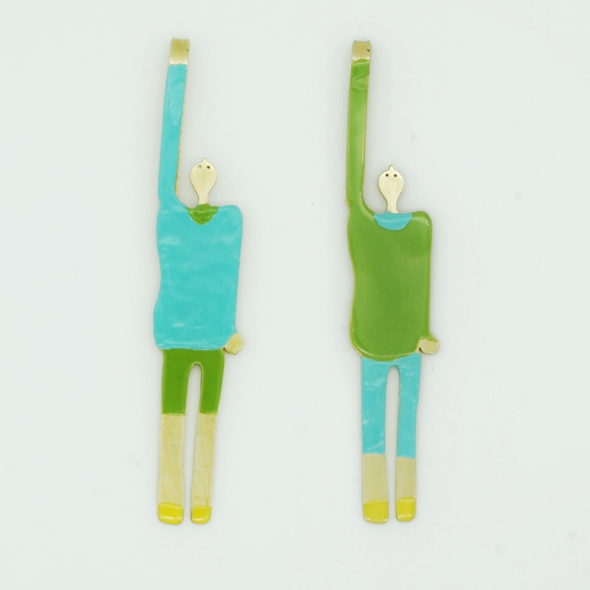 Lauri Azul es un sujetillo amable y divertido, su compañero es Lauri Verde y hacen una excelente pareja, se complementan muy bien y son un gran equipo. Les gusta salir a tomar aire fresco y también disfrutan de estar quietos en sus casas. Los sujetillos Lauris son excelentes para cualquier ocasión casual y semi formal, combinan con ropa de todos los colores y texturas gracias a su simpleza, son muy adaptables. Listos para sujetarse de playeras, blusas, suéteres, camisas y hasta alguna prenda nueva que nos falte por descubrir. Deja que los sujetillos Lauri se sujeten a ti y a tu persona favorita y los acompañen en sus aventuras y días de descanso. Sujetillo con playera azul, polaina y bermudas verdes, zapatos amarillos. Fabricados en latón con acabados en esmalte hechos a mano.